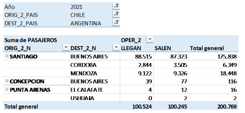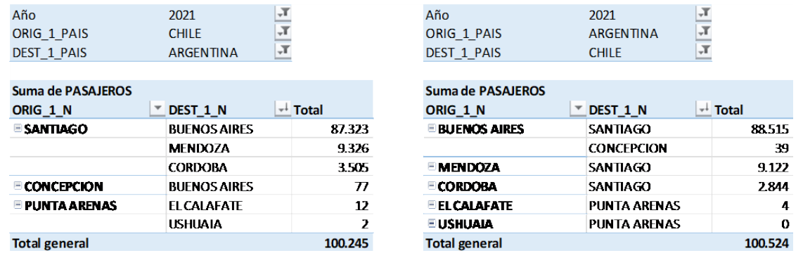 A modo de ejemplo, se presentan los vuelos entre Chile y Argentina en el año 2021, con ambas lógicas.